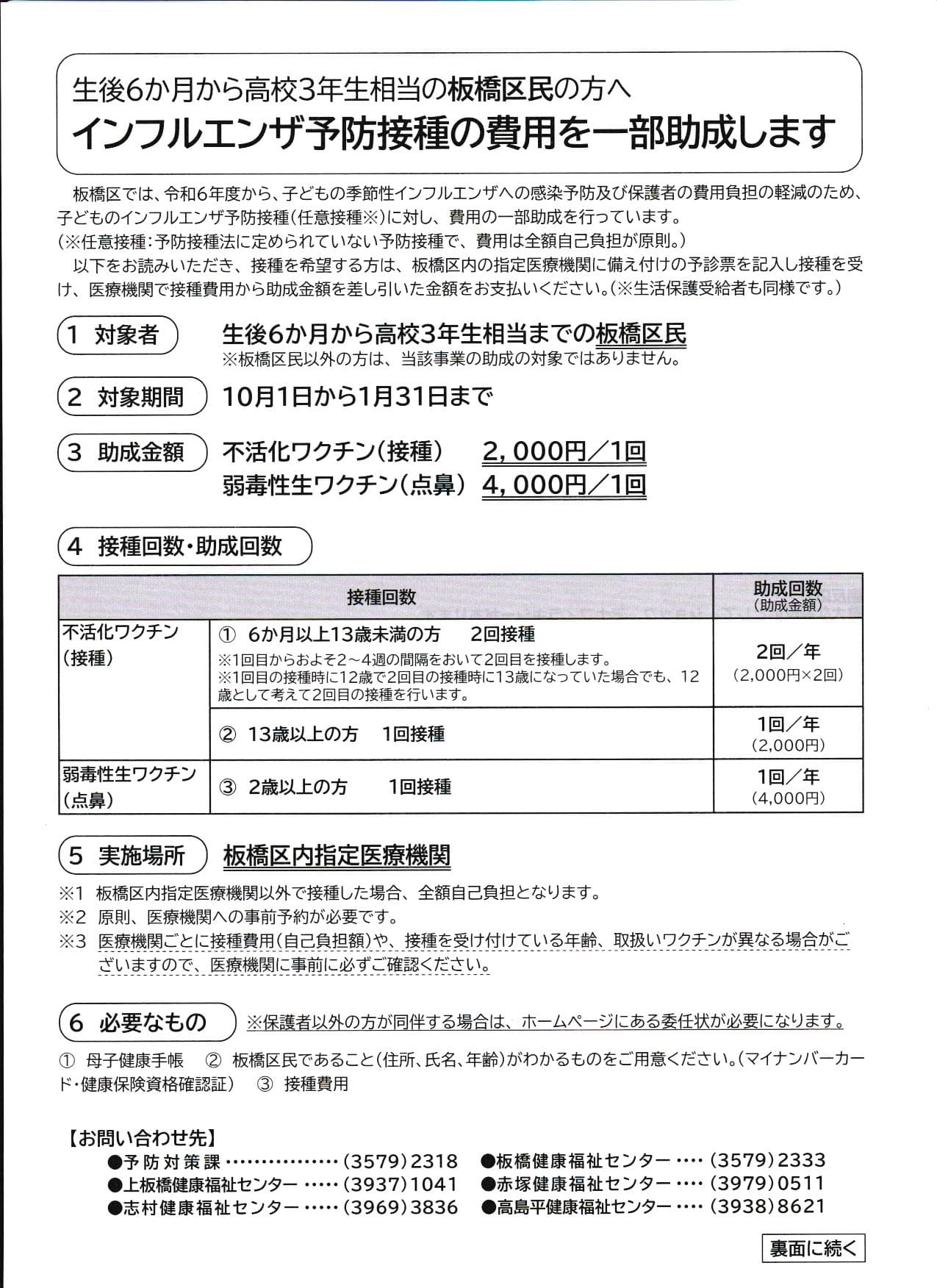 今年も板橋区より生後6か月から高校3年生相当の方に費用の助成を一部行うことになりました。助成を受けるには、助成対応の予診票をご利用いただく必要があります。複写式のため、ネットからのダウンロードができませんので、院外クリニック自動ドア横のボックス、院内自動ドア横本棚に設置しておりますので事前にお取りいただき、ご自宅でお書きいただいてからご来院ください。